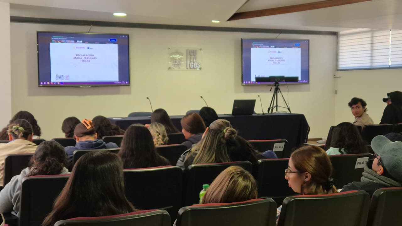 Este evento, organizado en conjunto con la Administración General de Servicios al Contribuyente del Servicio de Administración Tributaria (SAT), estuvo dirigido a estudiantes de la Licenciatura en Administración, Programa Educativo que se imparte en ambas sedes del CULagos, y también se abrió a la participación de la comunidad universitaria.