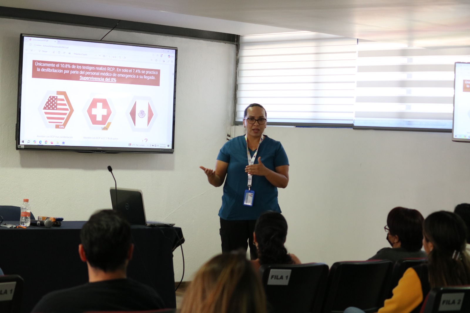 La segunda etapa, realizada de forma presencial los días miércoles 18 y viernes 20 de febrero, fue teórica y práctica. Involucró el uso de maniquíes y un desfibrilador automático de entrenamiento.