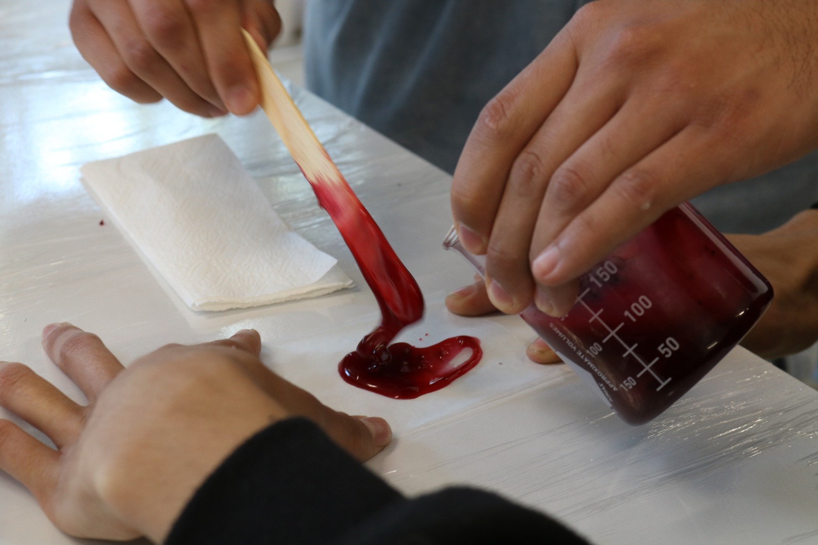El primer taller, llamado «Empaques que no pesan ni al planeta ni a la conciencia», tuvo lugar el miércoles 4 de marzo. El objetivo de este taller fue darle a las y los participantes las definiciones fundamentales de lo que es el bioplástico y sus principales características, además de enseñarles a elaborar una película de material bioplástico a partir de especies vegetales.